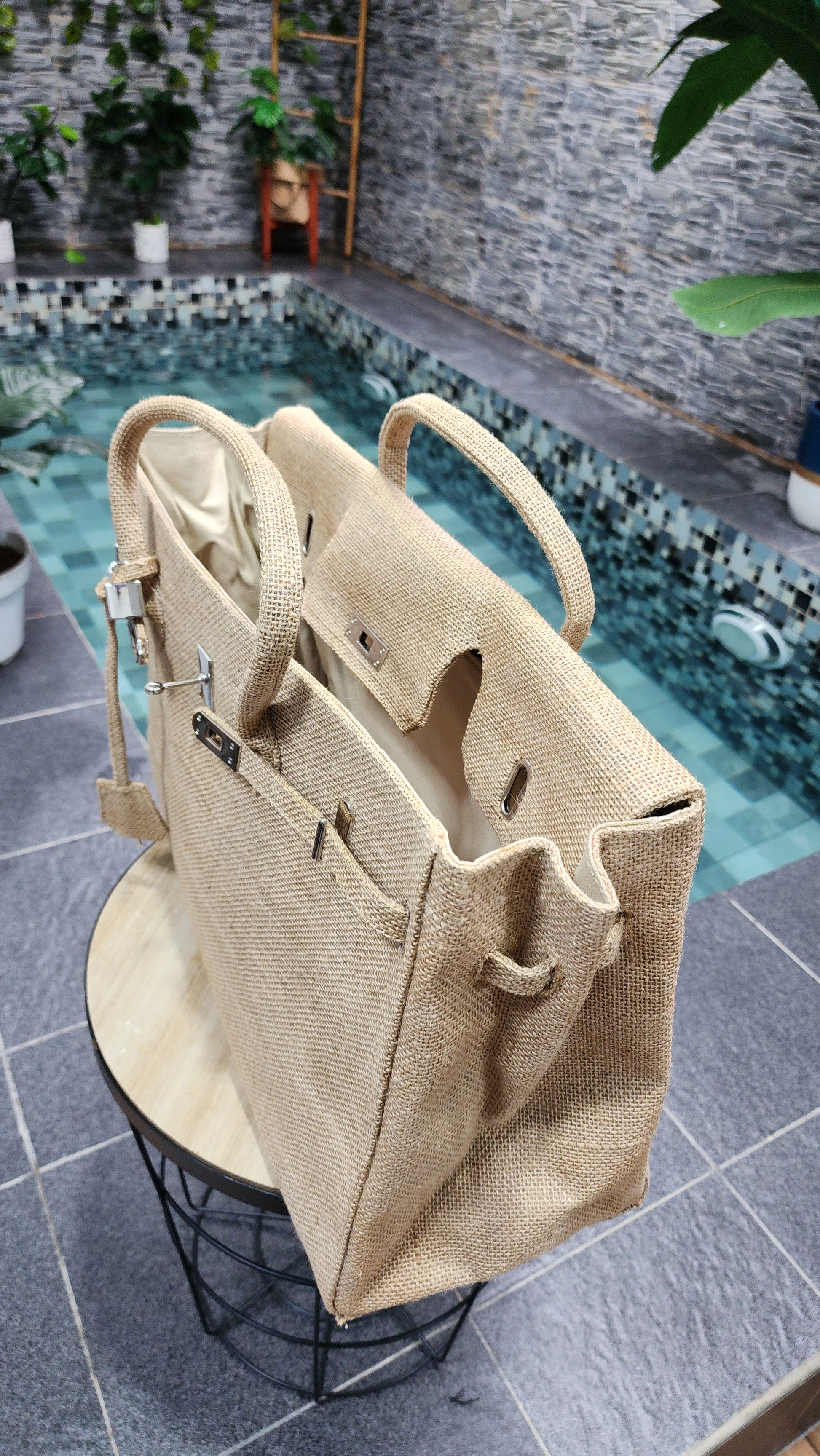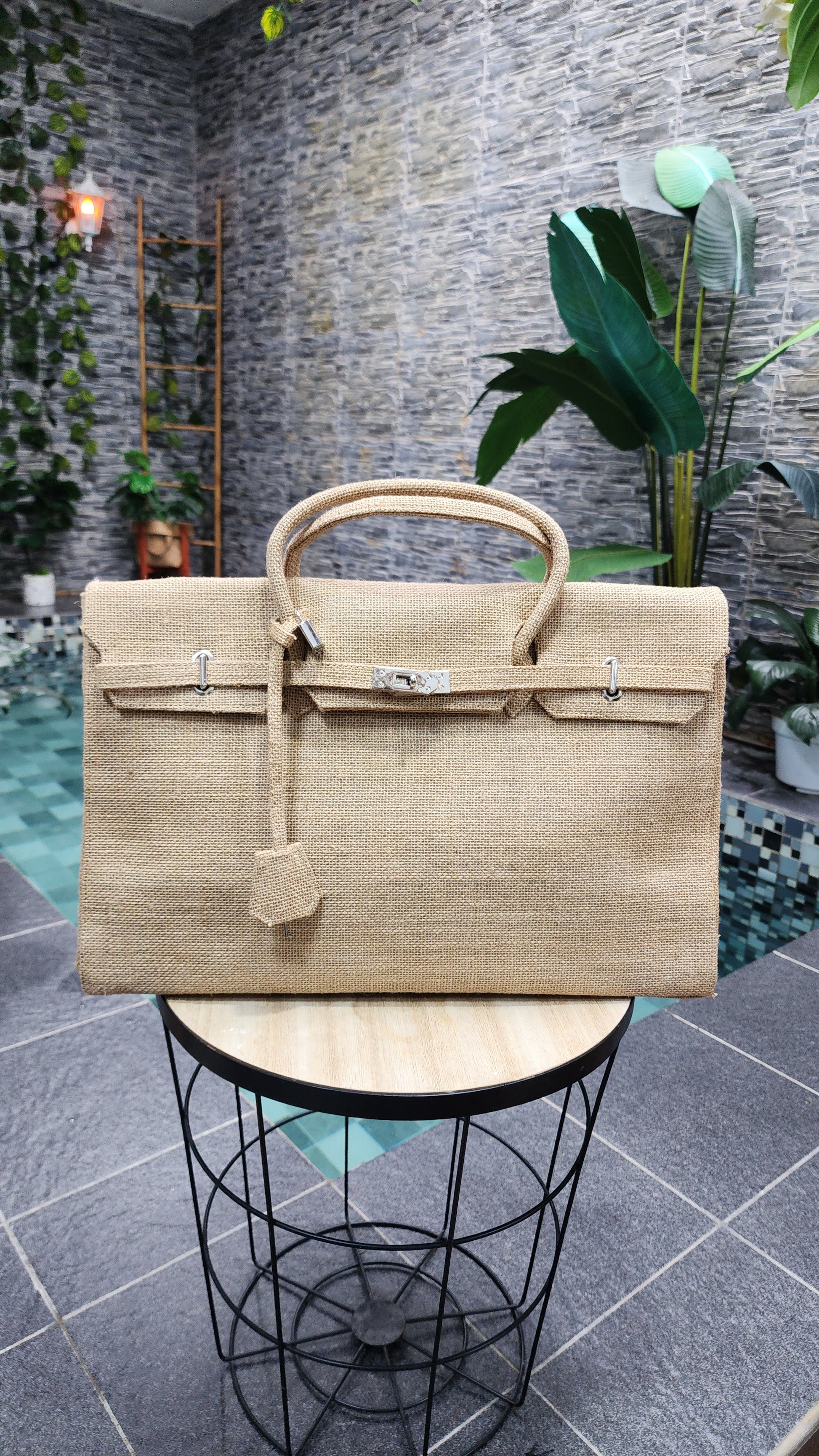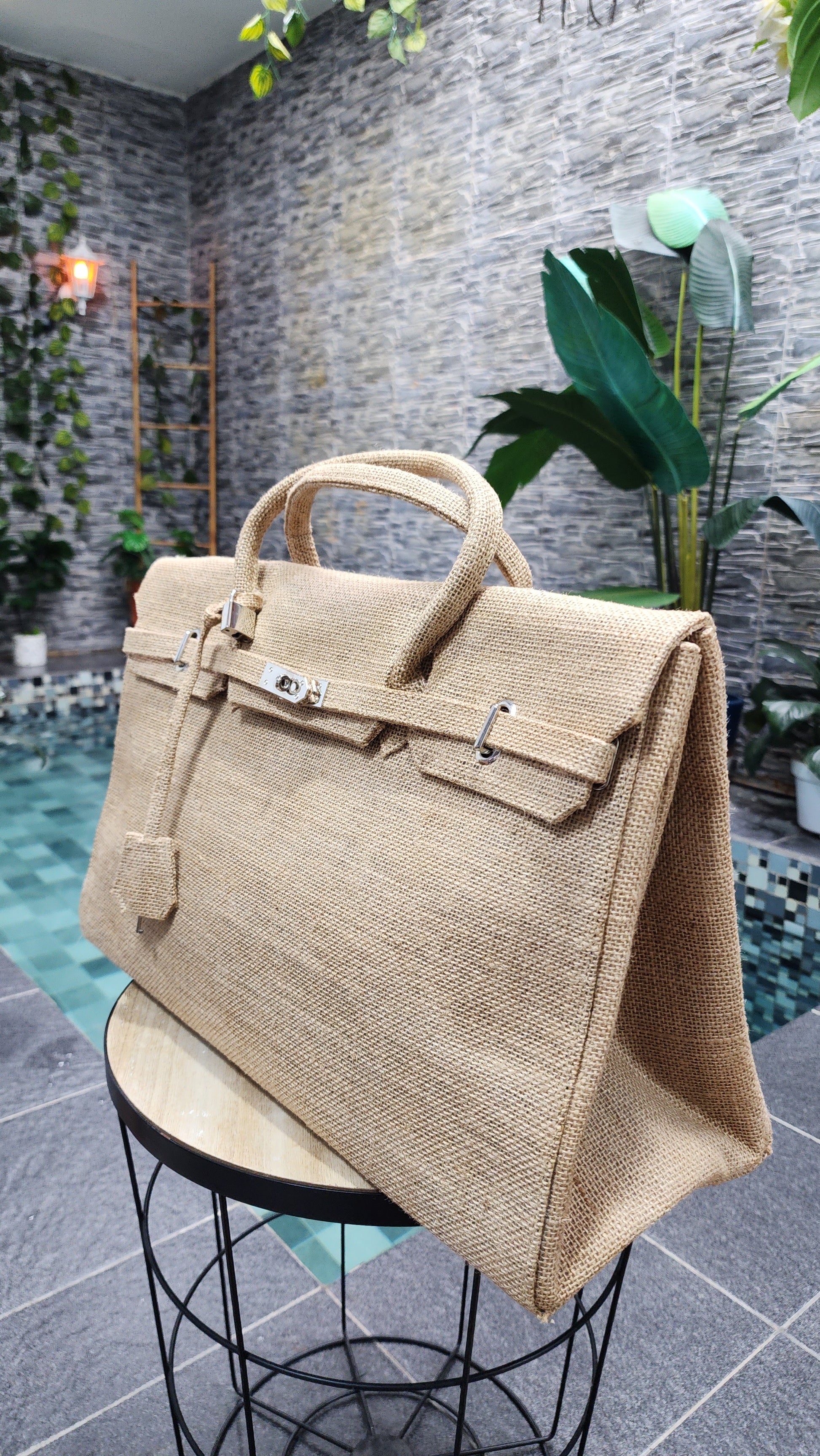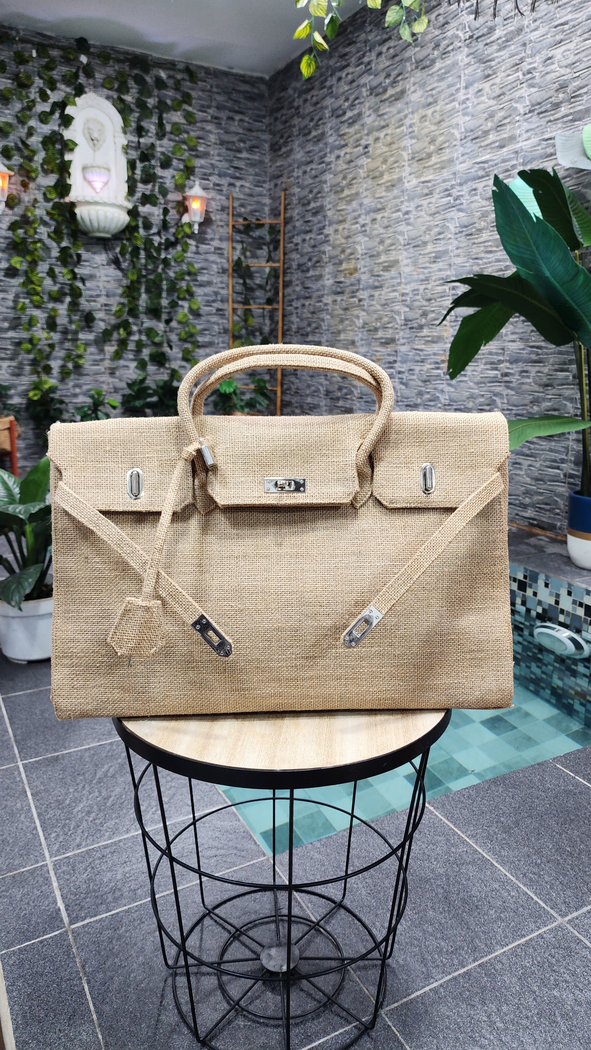 Handmade burlap / jute bag, Large size (45cm)_style 6