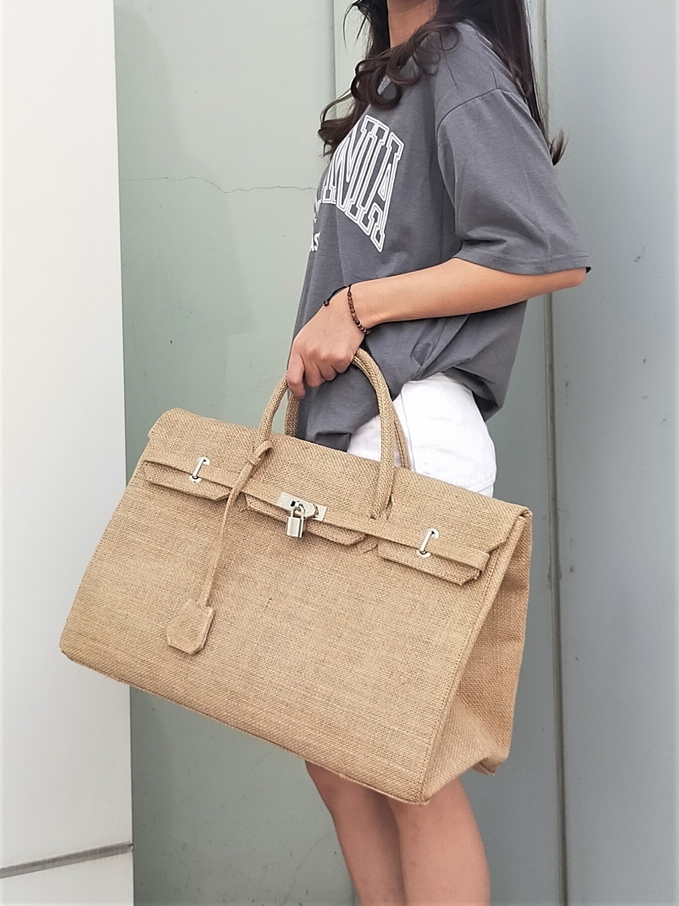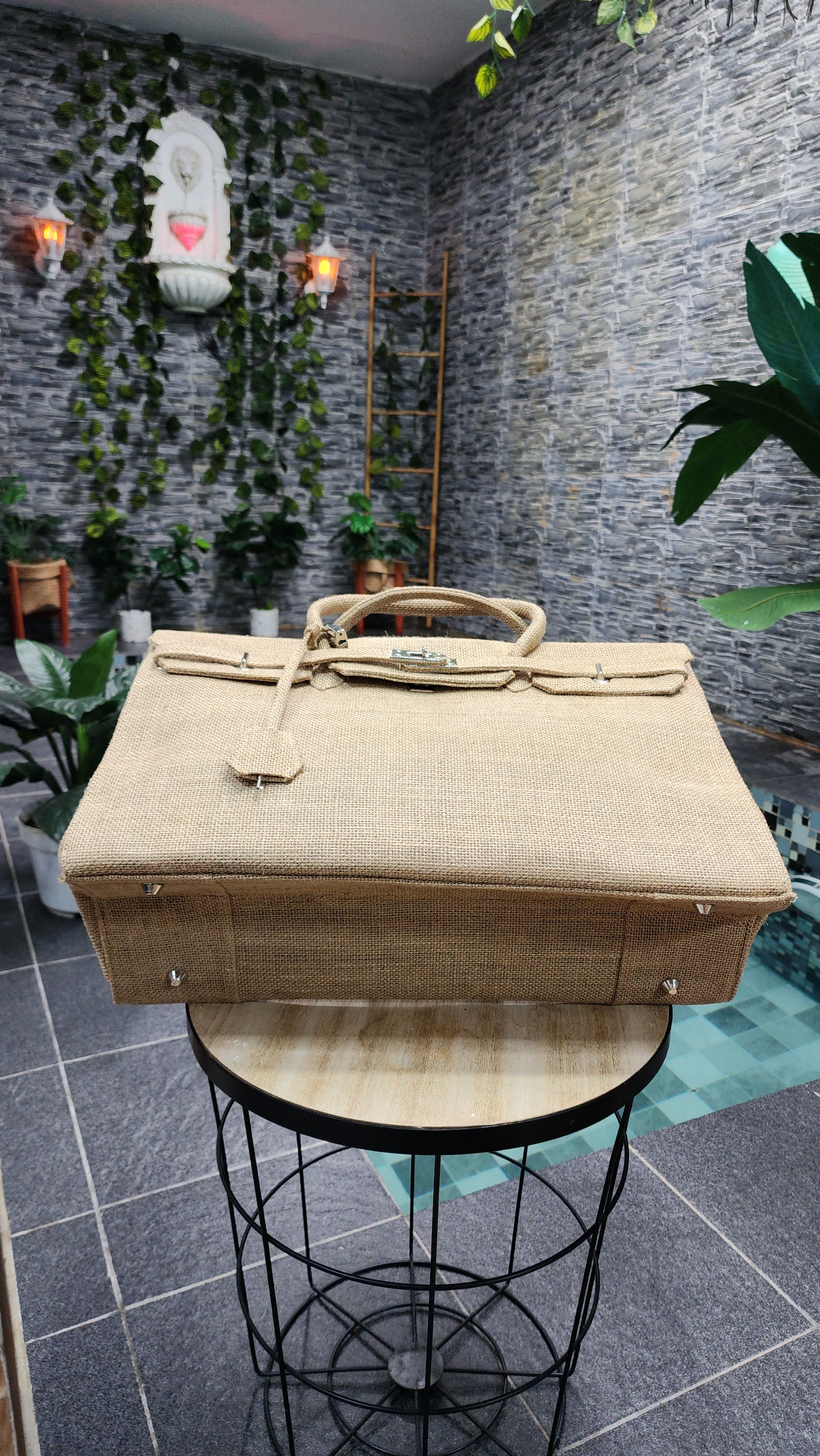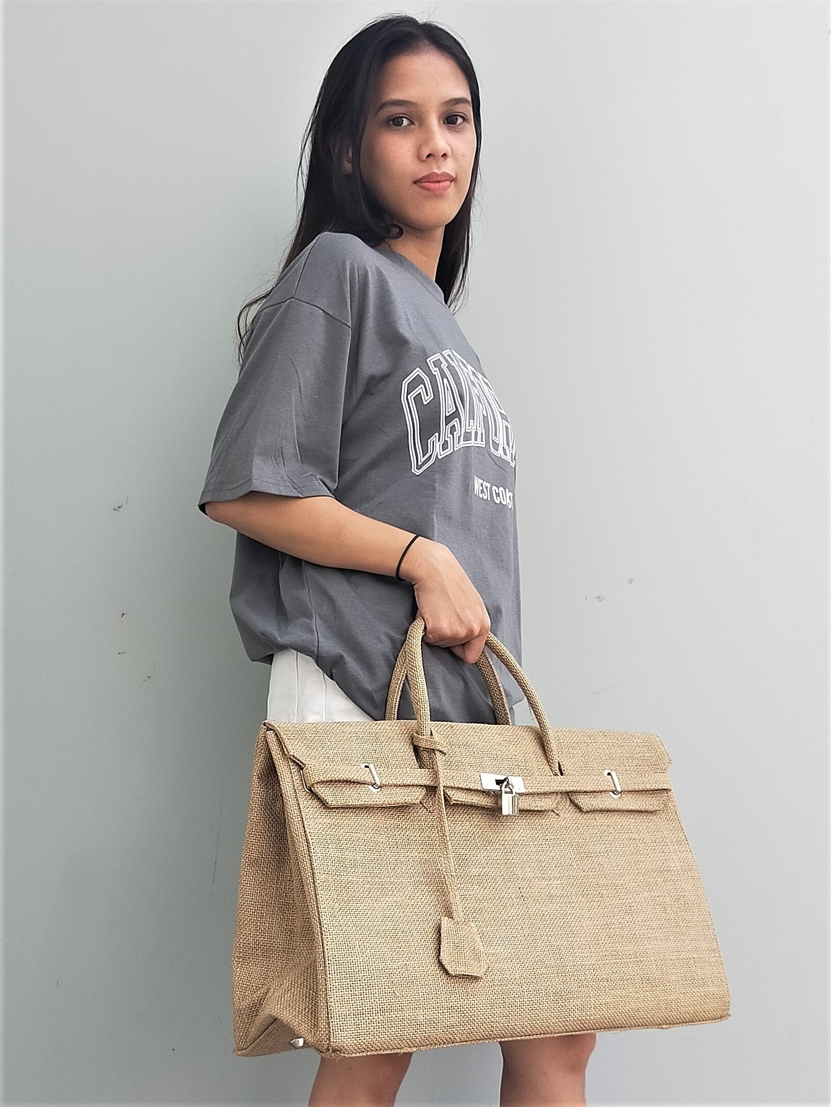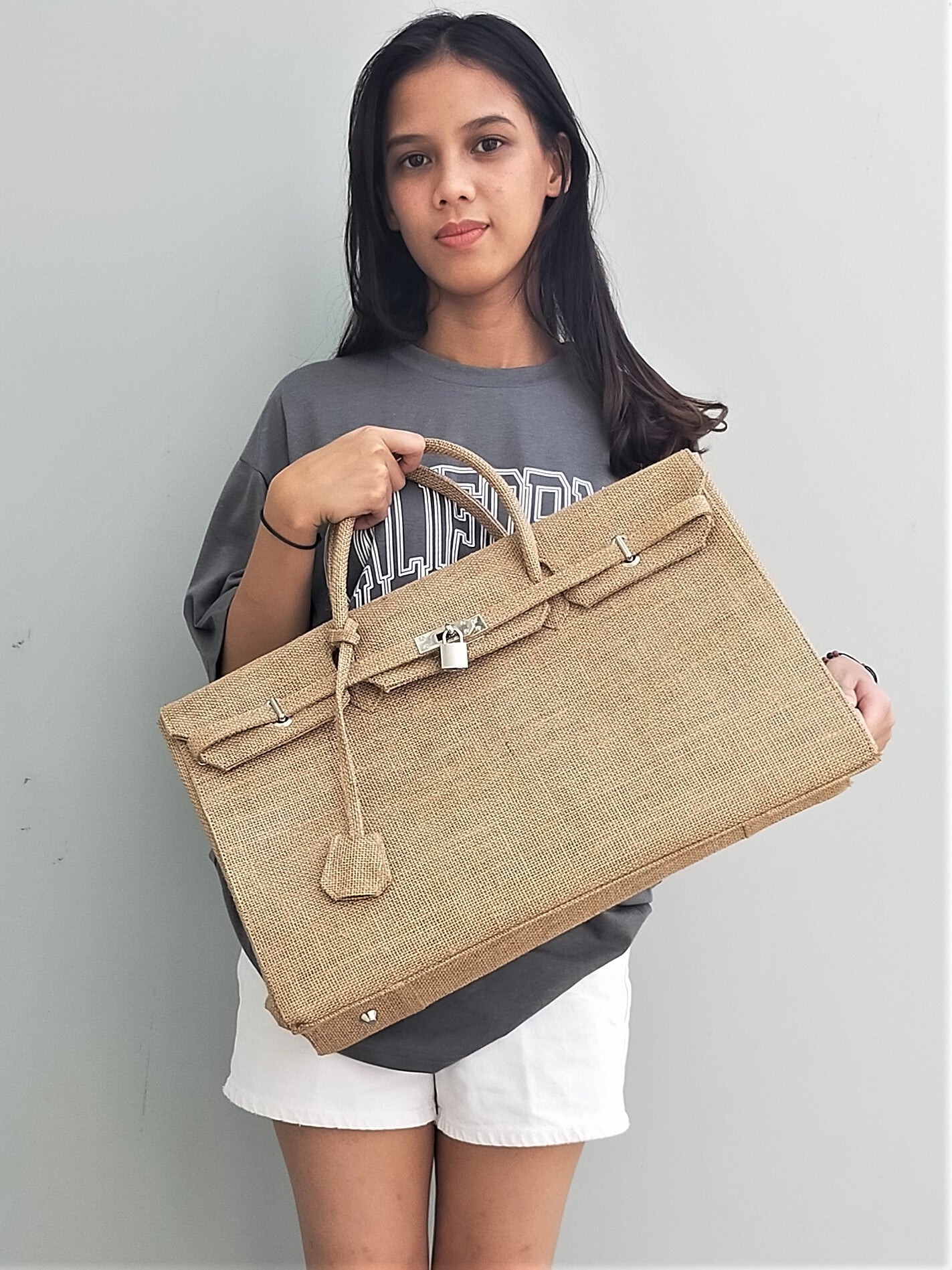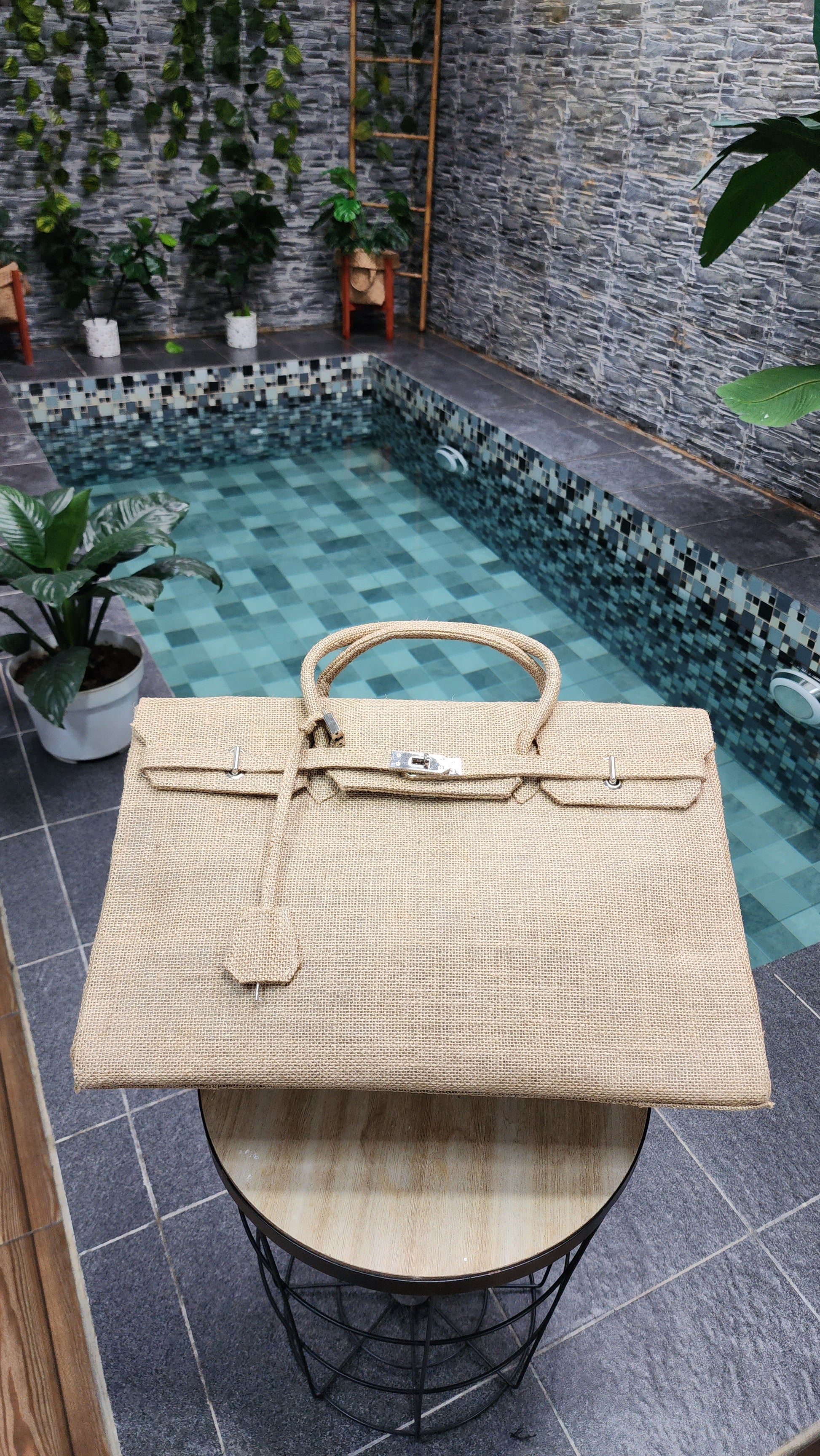 Handmade burlap / jute bag, Large size (45cm)_style 6